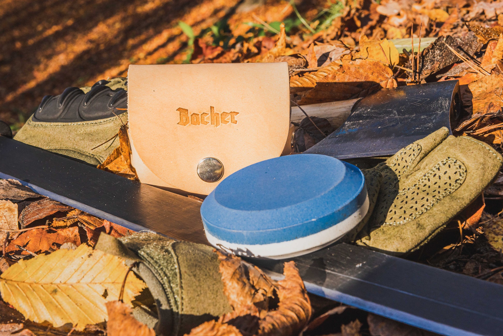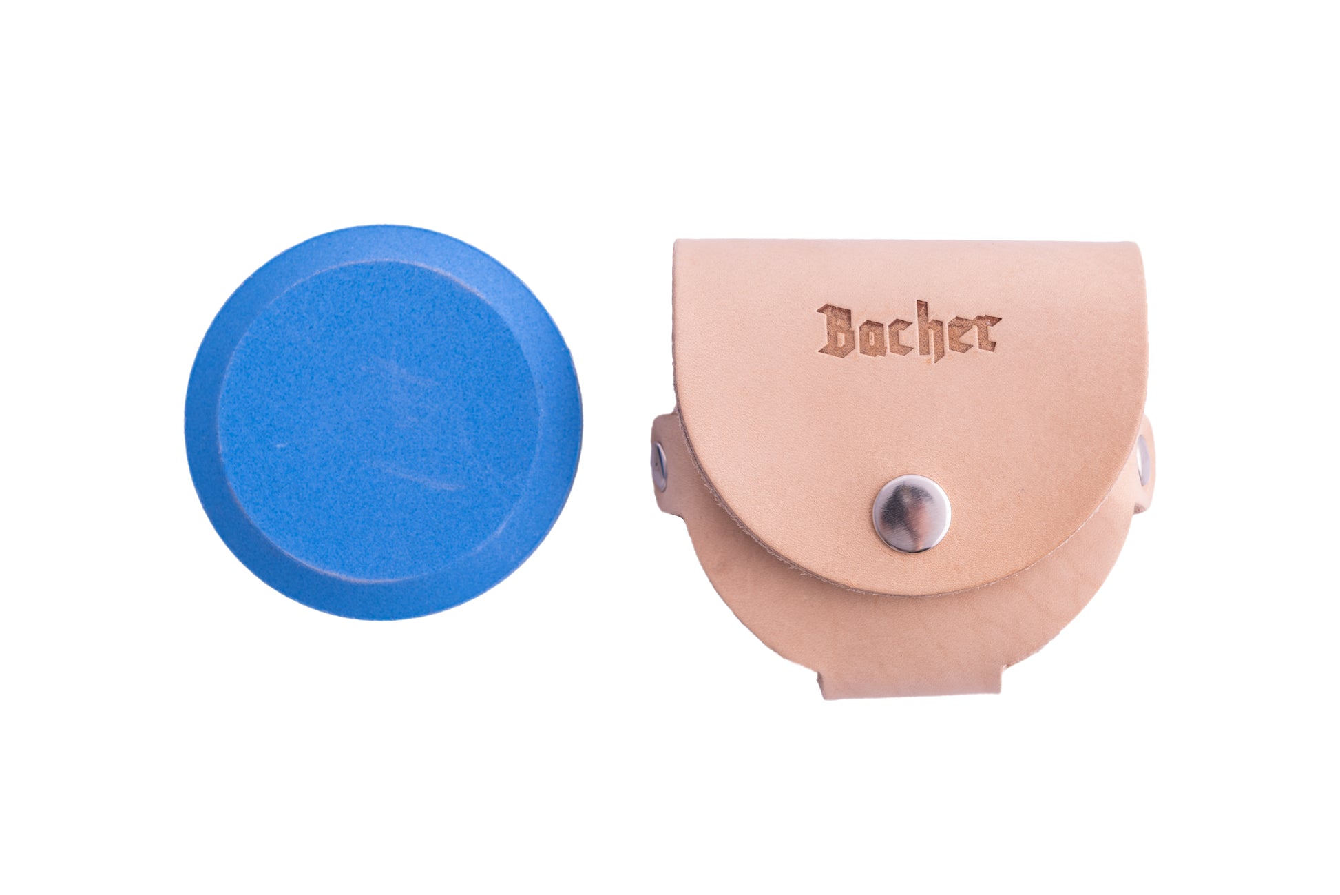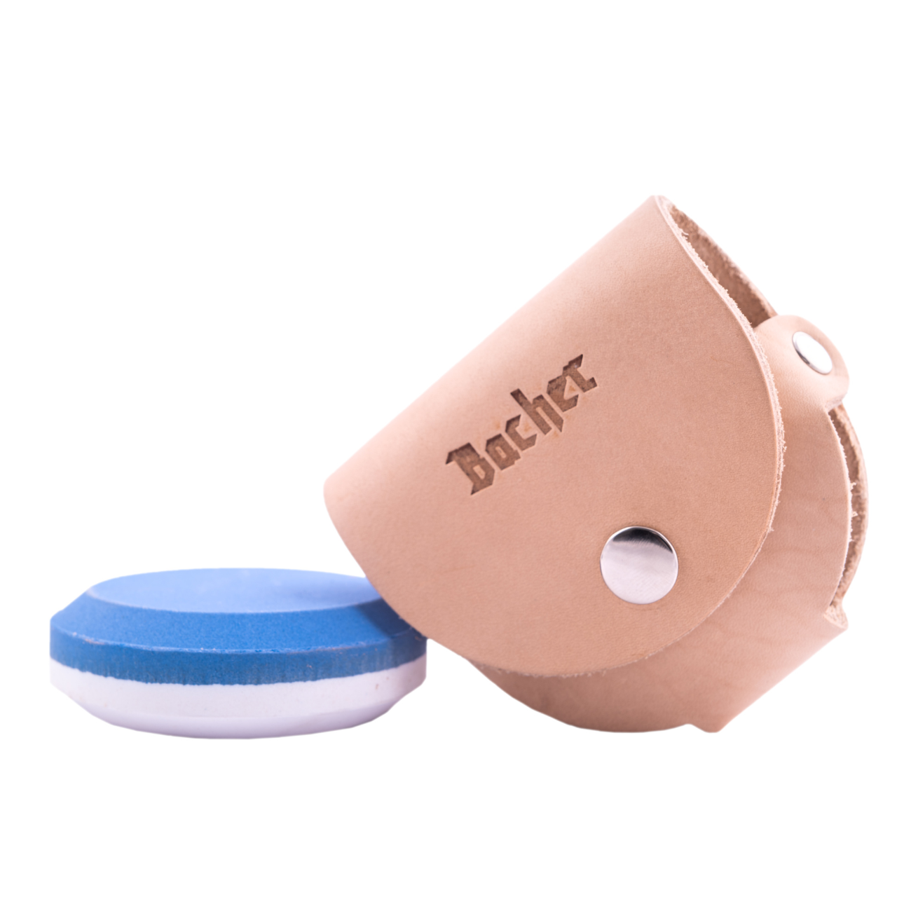 Thanks to its small size and the included leather pouch, you can always keep the sharpener close at hand and reach for it when you suddenly need to sharpen your work tool. The holster is handmade from natural cowhide leather and its shape is perfectly matched to the stone, making it stable when worn. The cover has a practical snap fastener and solid rivets on the sides. Suitable for belts with a maximum width of 5 cm.