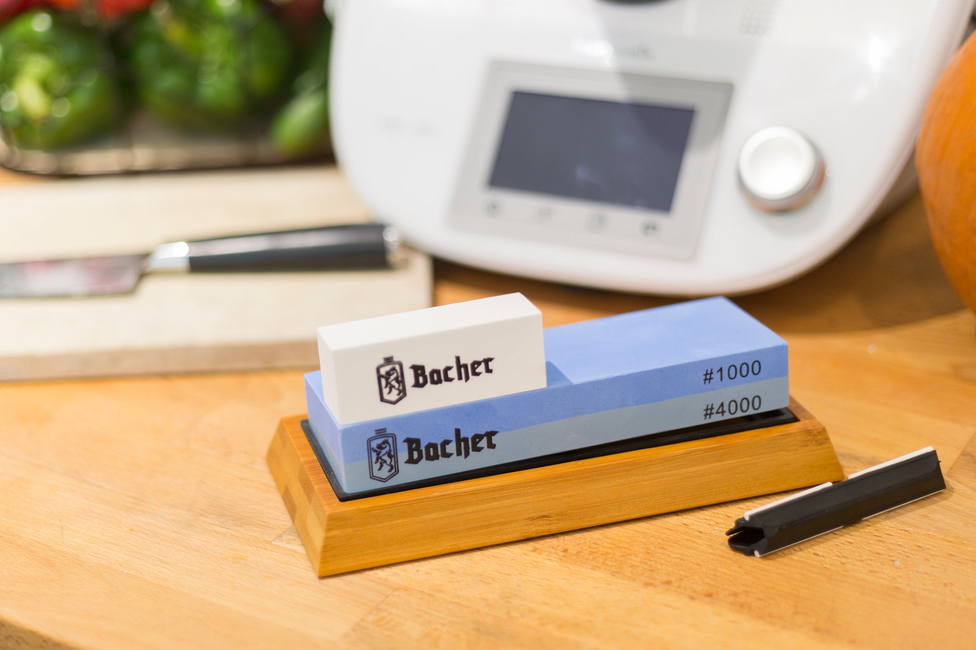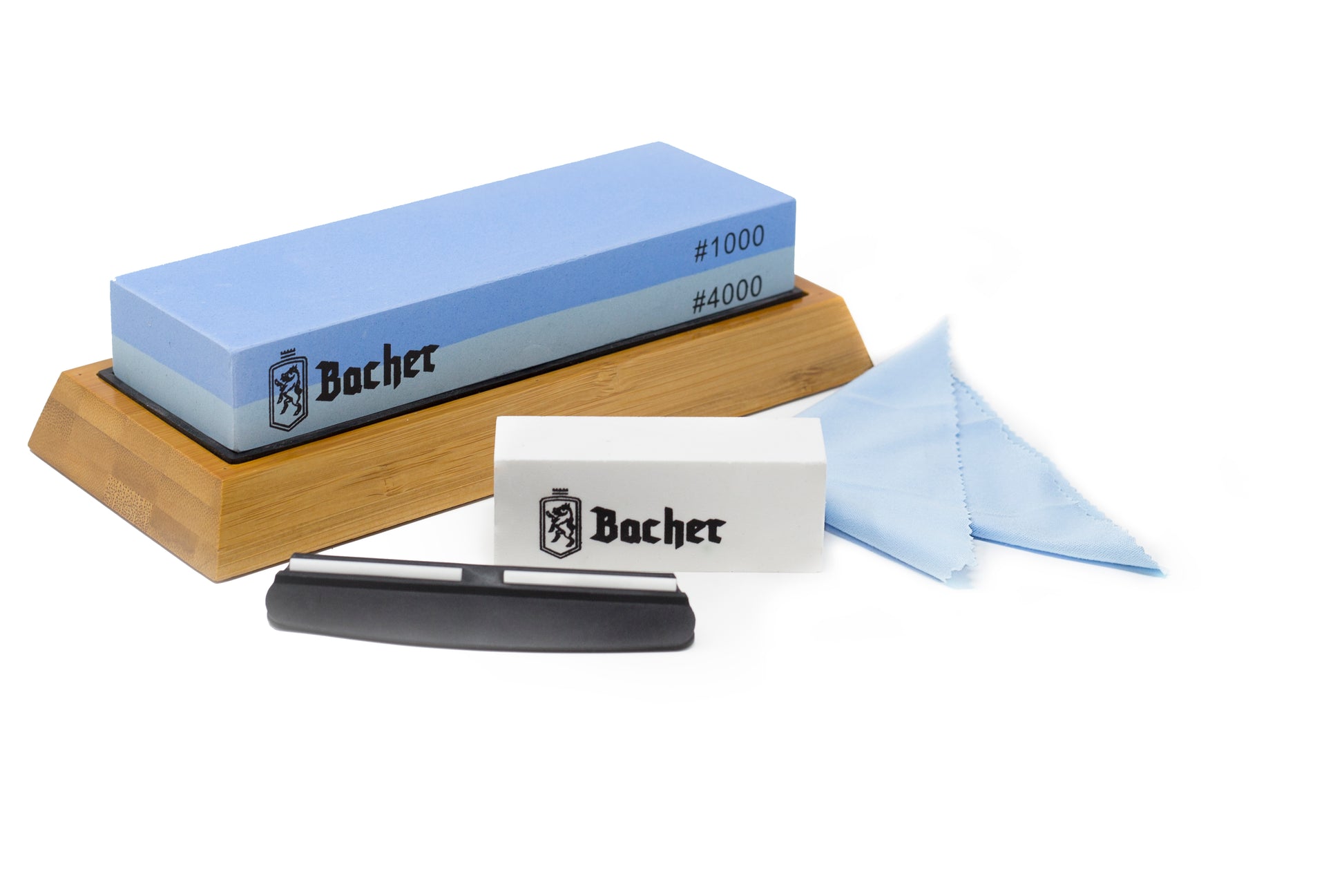 The Bacher double-sided stone sharpener is designed for sharpening all types of kitchen and outdoor knives, pocket knives, machetes and many others. The wide sharpening surface of the stone ensures proper adaptation to any blade size. The accessories supplied with the sharpener make sharpening easy, precise and safe.