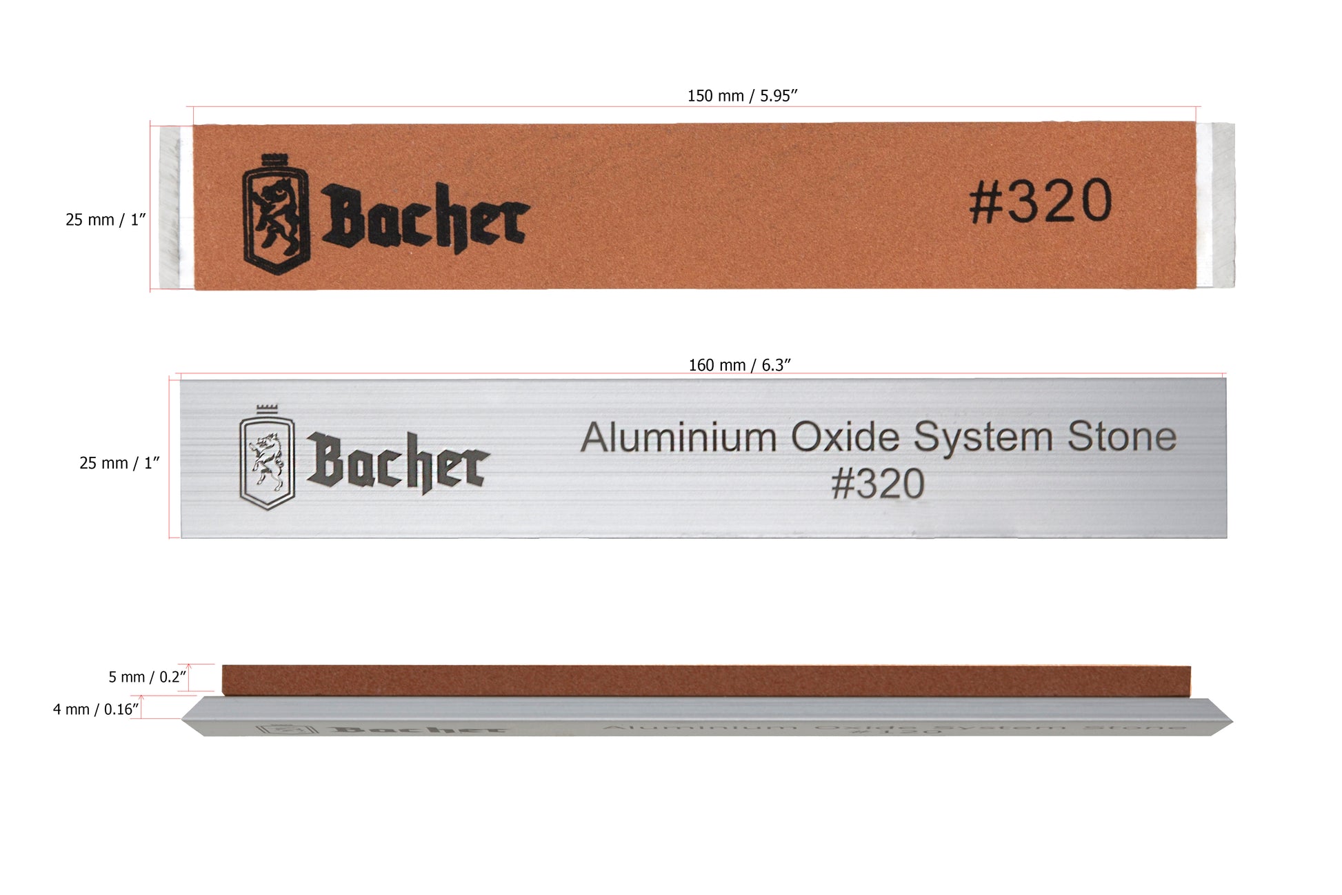 Bacher stones are distinguished by both quality and size – they are 25 mm wide. This is the American standard for system stones. Unlike Chinese sharpeners which use 20 mm stones. Of course, our system stones are also interchangeable with 20 mm stones, but the larger size means an increase in sharpening speed and stone life of up to 25%!