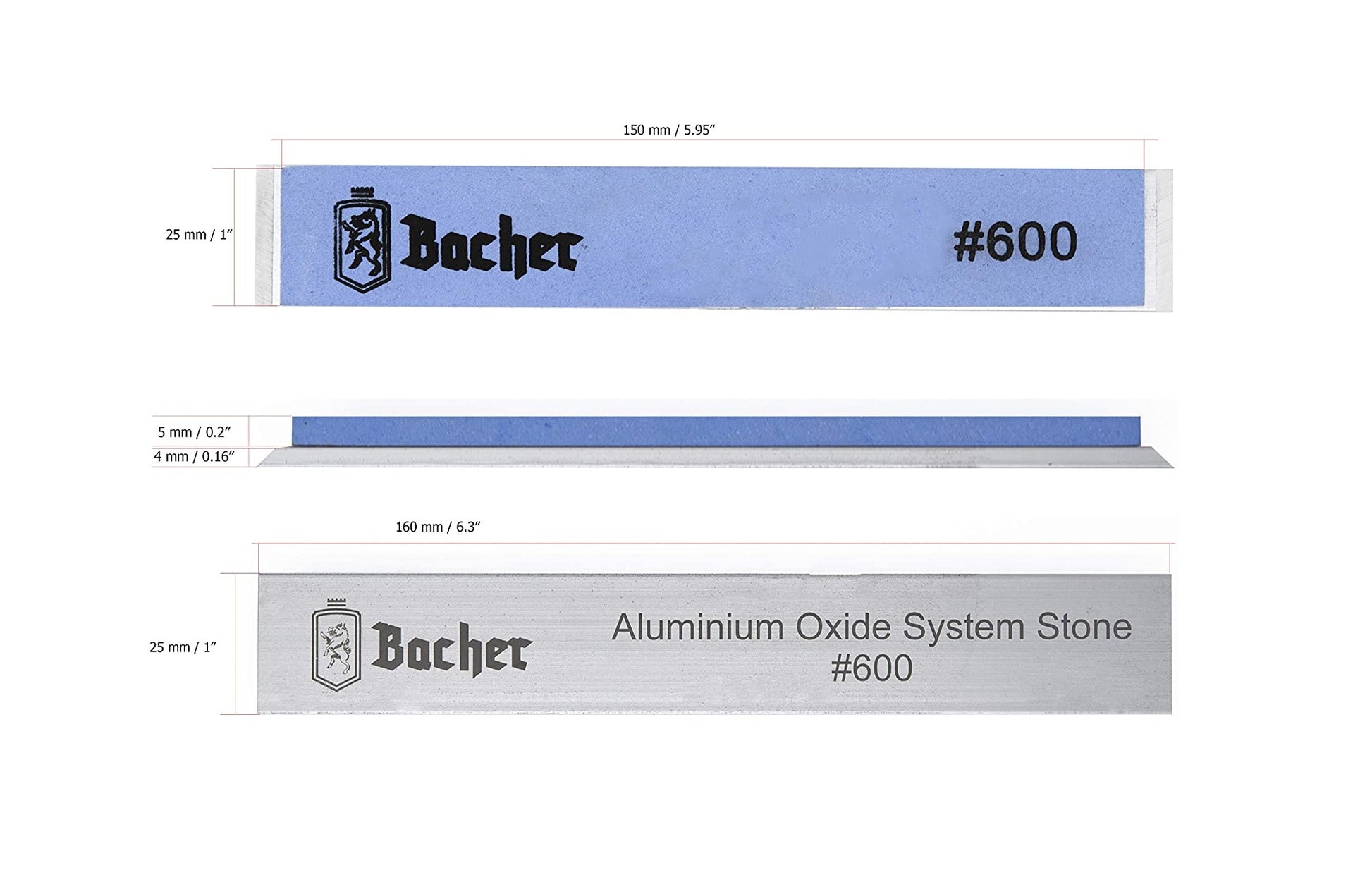 Bacher stones are distinguished by both quality and size – they are 25 mm wide. This is the American standard for system stones. Unlike Chinese sharpeners which use 20 mm stones. Of course, our system stones are also interchangeable with 20 mm stones, but the larger size means an increase in sharpening speed and stone life of up to 25%!