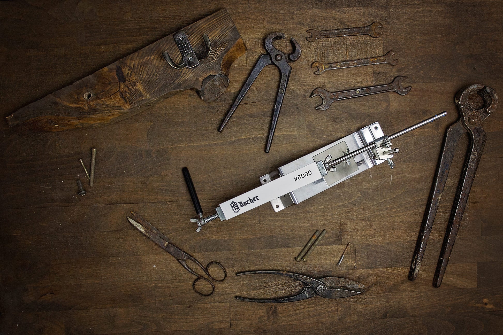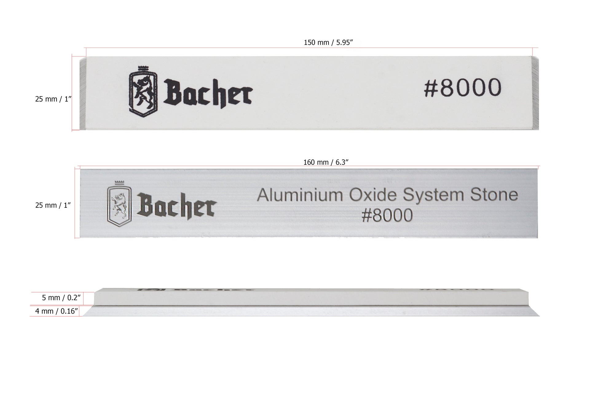 Bacher stones are distinguished by both quality and size – they are 25 mm wide. This is the American standard for system stones. Unlike Chinese sharpeners which use 20 mm stones. Of course, our system stones are also interchangeable with 20 mm stones, but the larger size means an increase in sharpening speed and stone life of up to 25%!