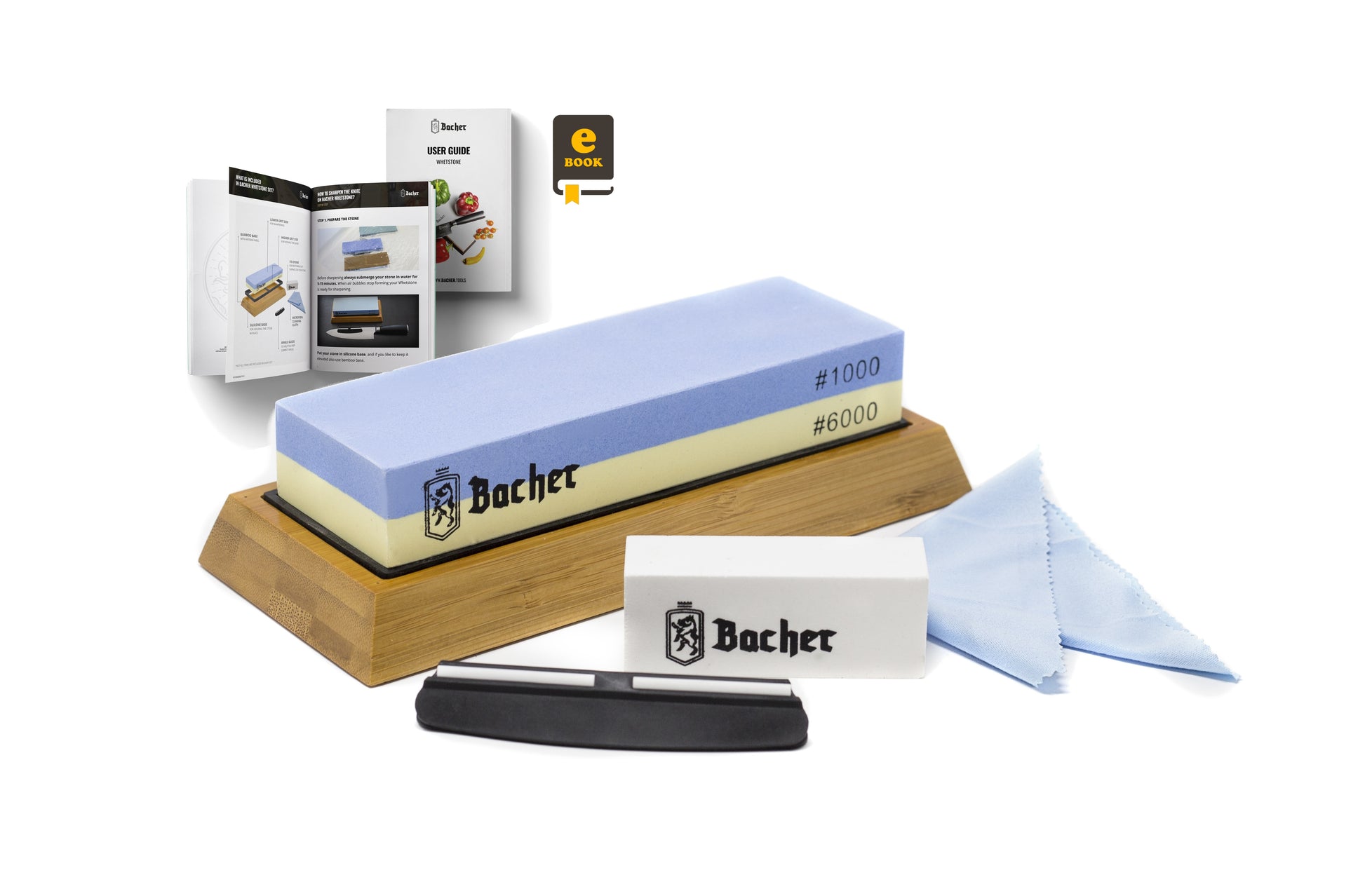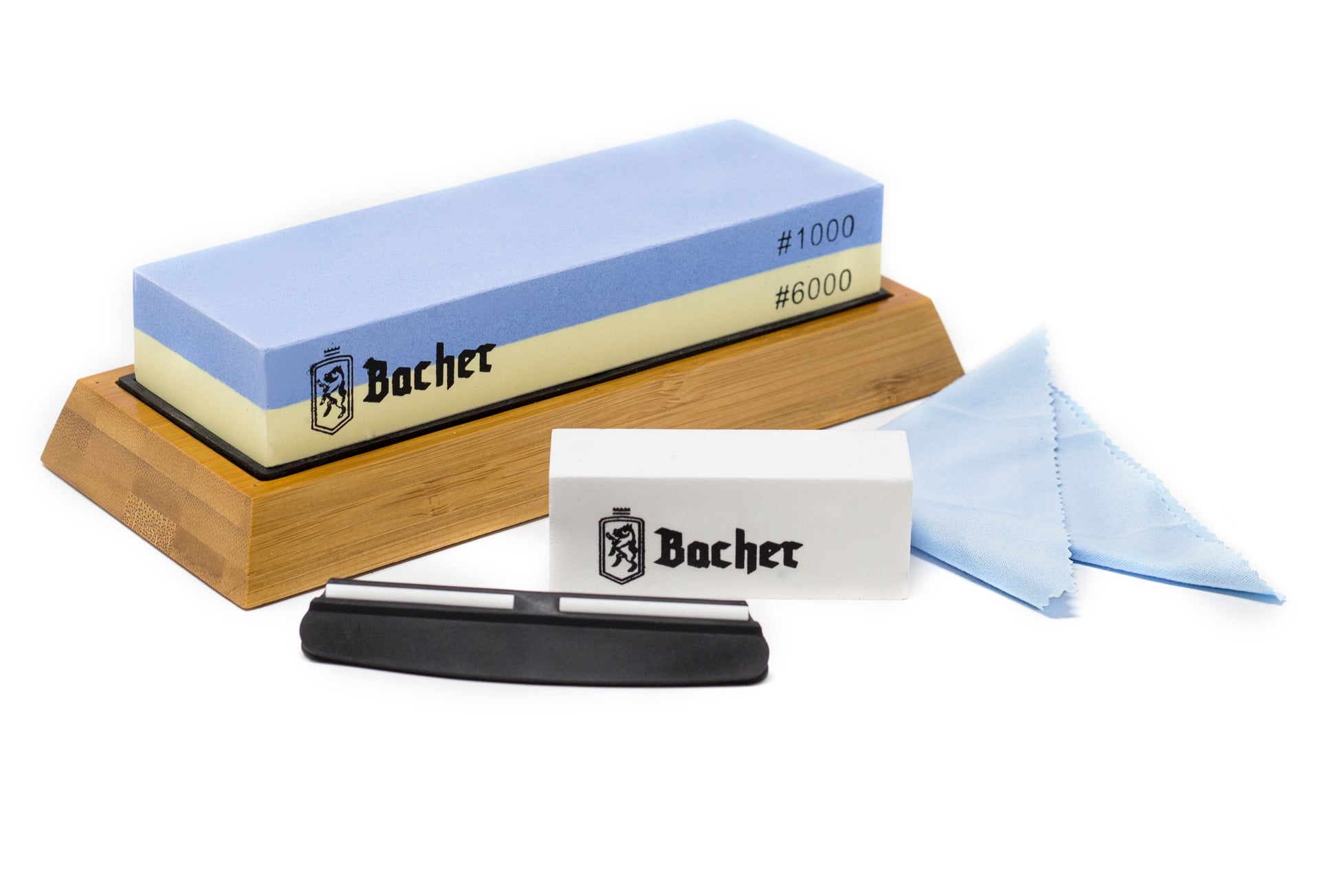 Dwustronna ostrzałka kamienna Bacher przeznaczona jest do ostrzenia wszystkich typów noży kuchennych, outdoorowych, scyzoryków, maczet i wielu innych. Szeroka powierzchnia ścierna kamienia zapewnia odpowiednie dopasowanie do każdego rozmiaru ostrza. Akcesoria dołączone do ostrzałki umożliwiają łatwe, precyzyjne i bezpieczne ostrzenie.
