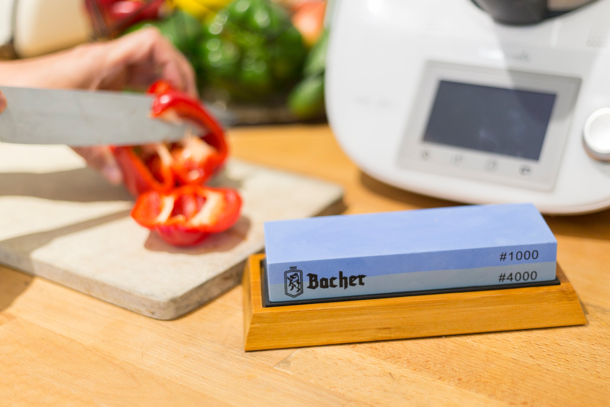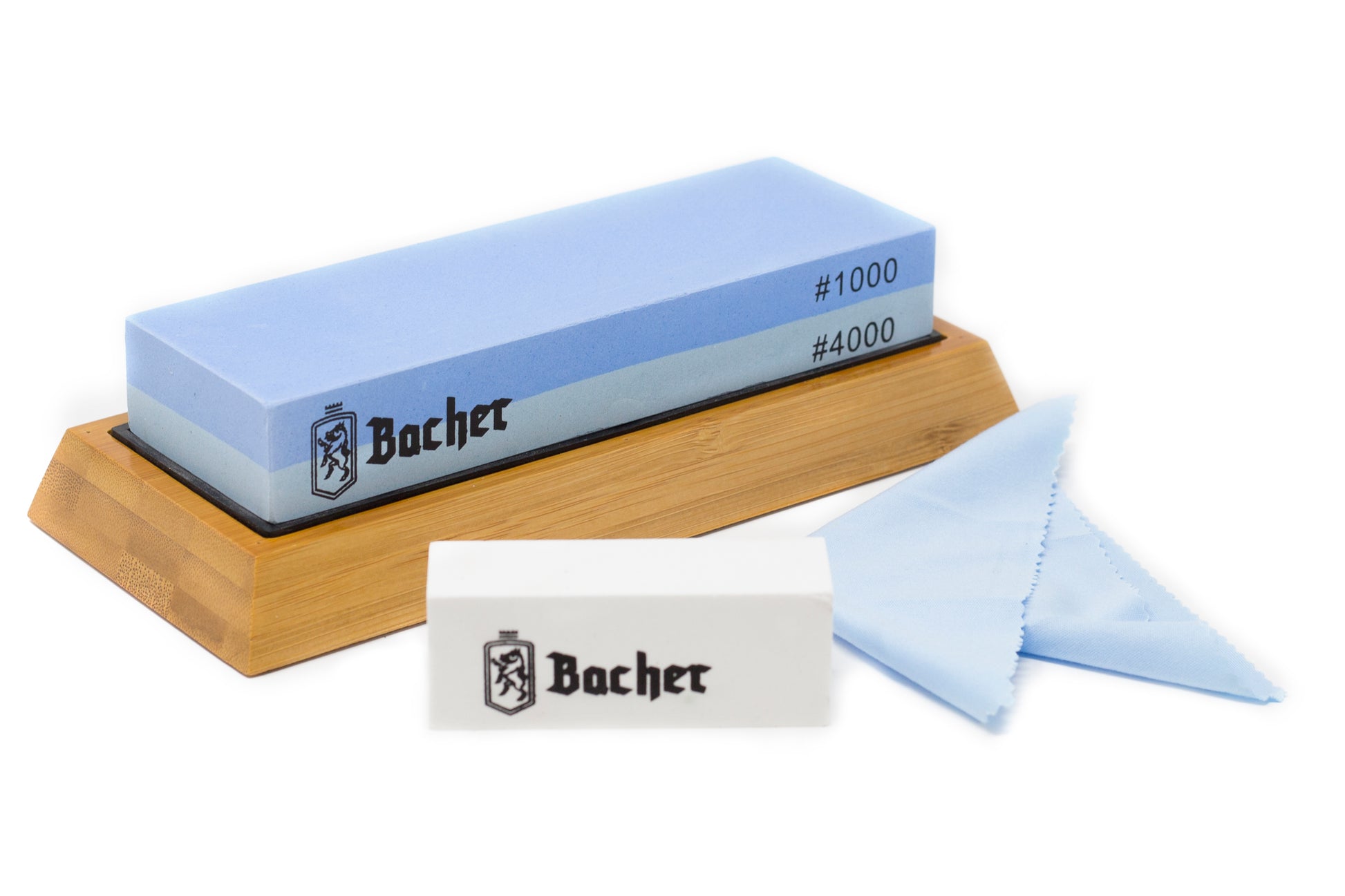 Dwustronna ostrzałka kamienna Bacher przeznaczona jest do ostrzenia wszystkich typów noży kuchennych, outdoorowych, scyzoryków, maczet i wielu innych. Szeroka powierzchnia ścierna kamienia zapewnia odpowiednie dopasowanie do każdego rozmiaru ostrza. Akcesoria dołączone do ostrzałki umożliwiają łatwe, precyzyjne i bezpieczne ostrzenie.