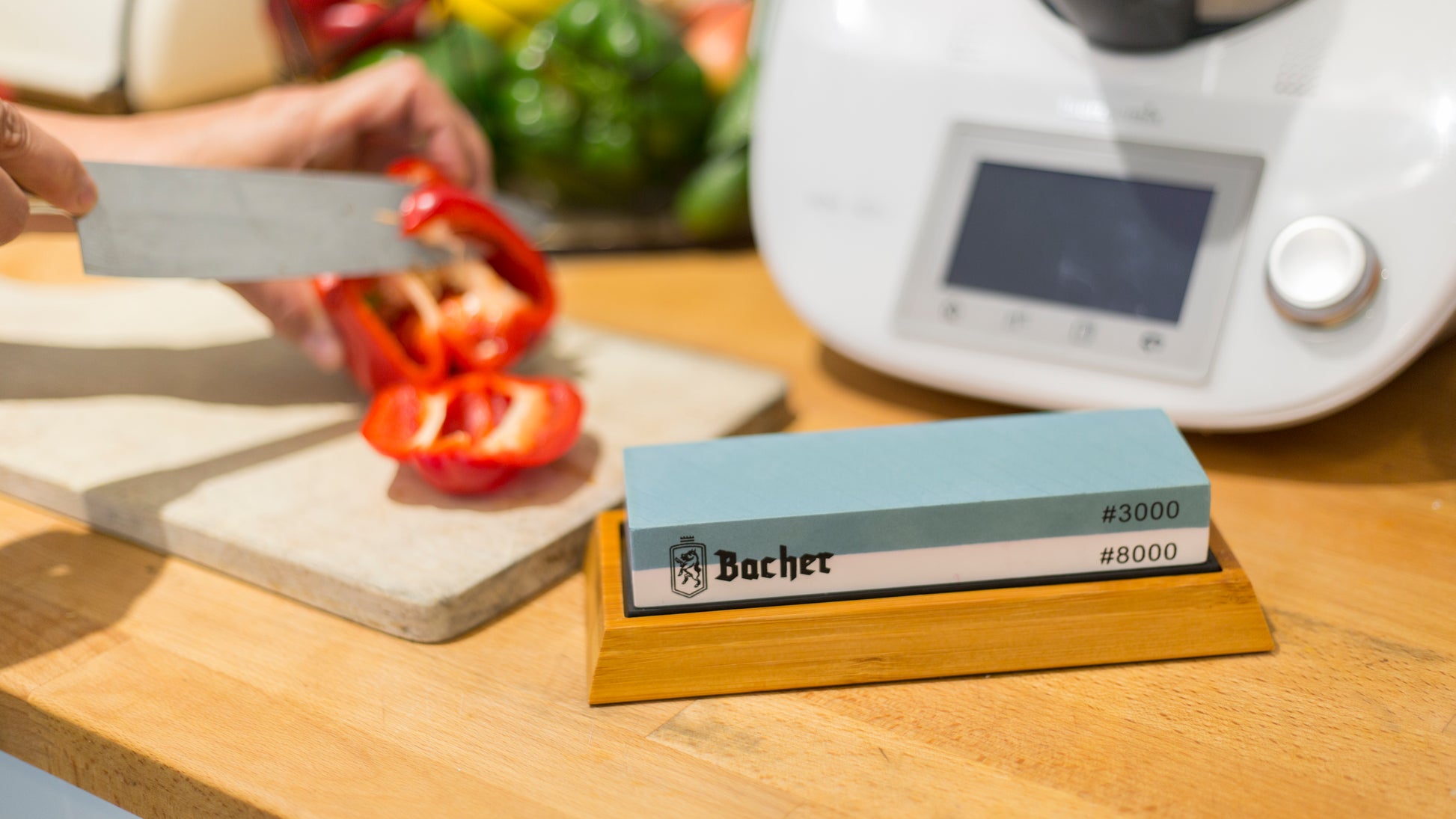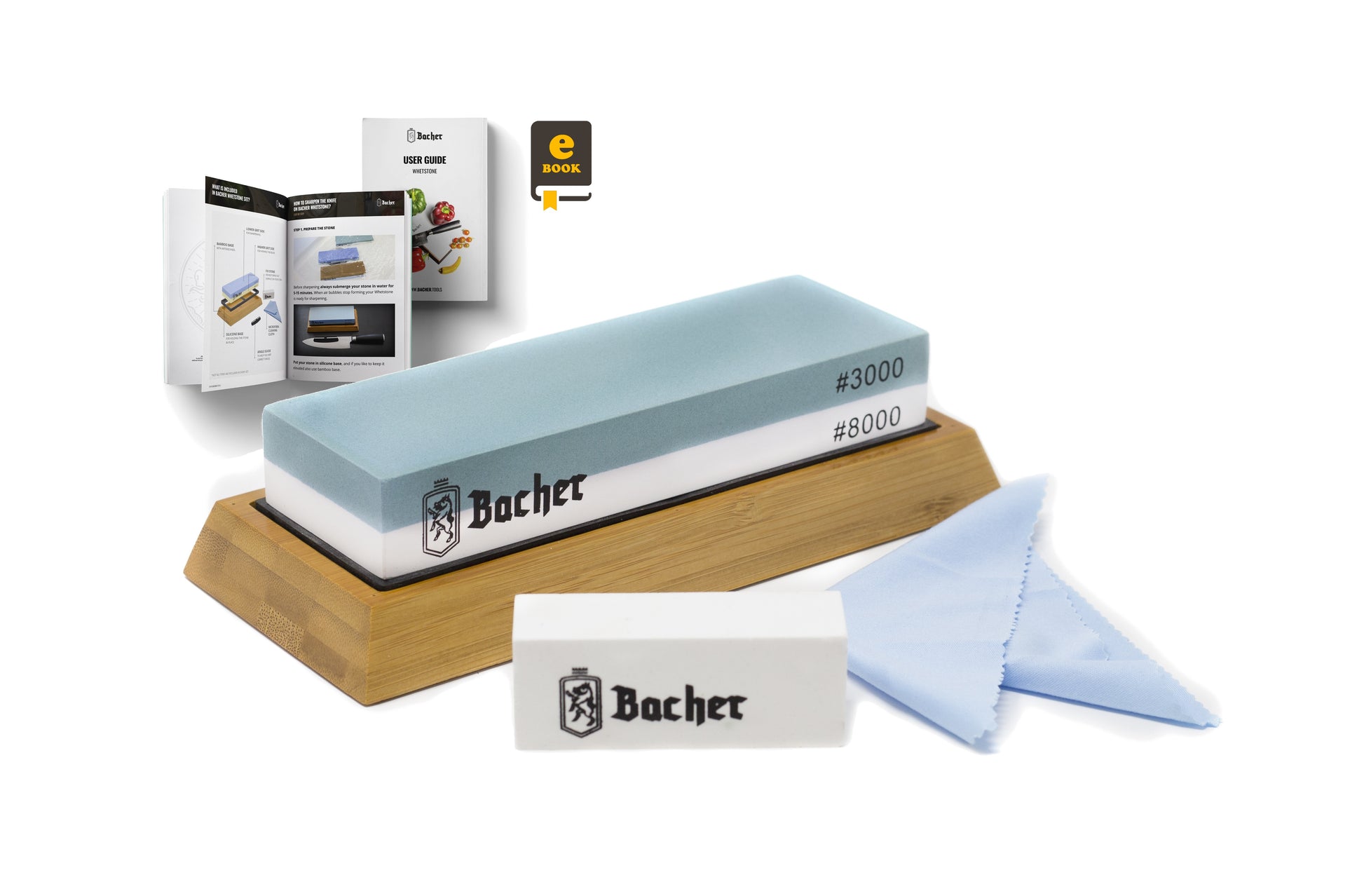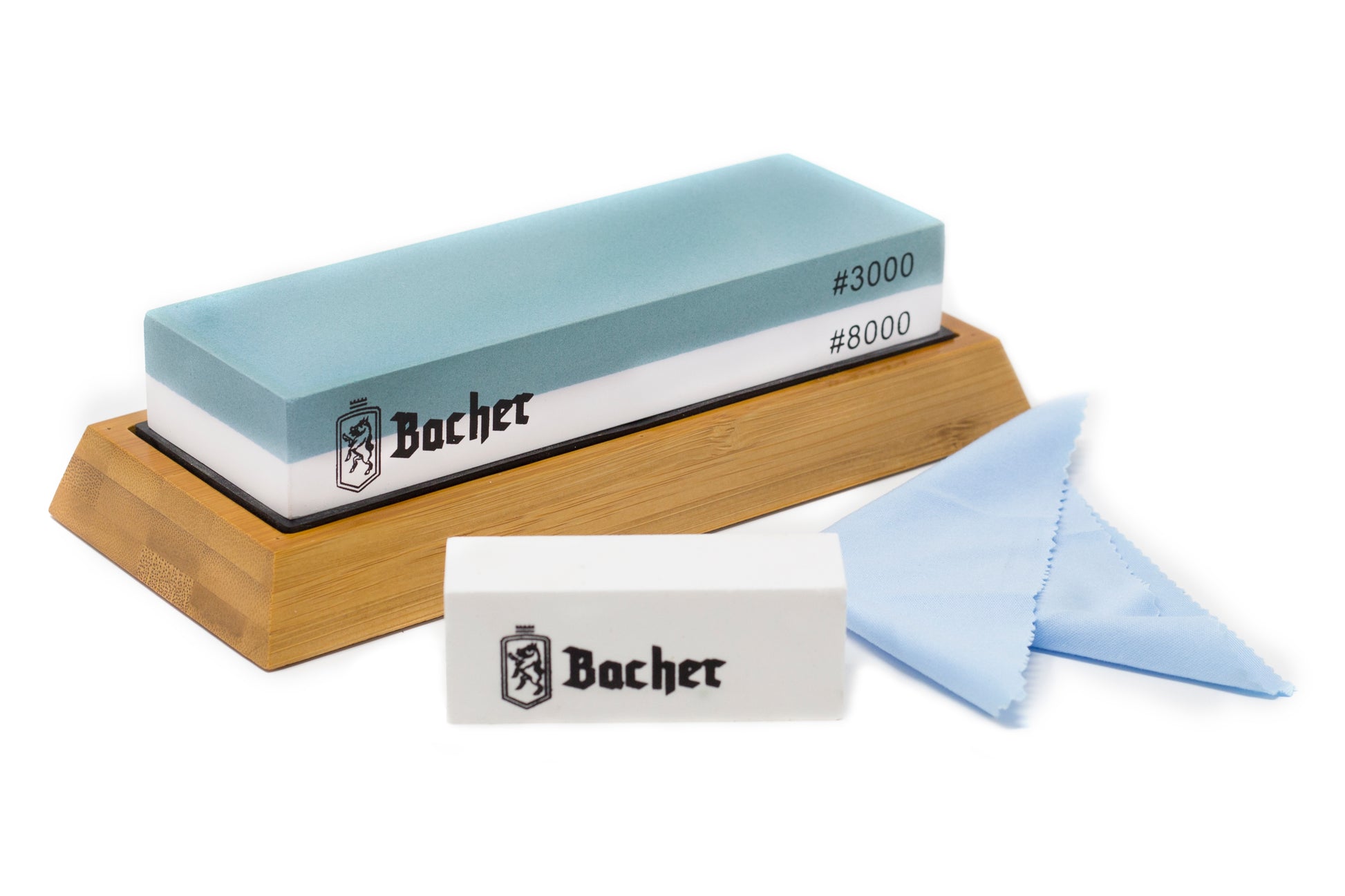 Dwustronna ostrzałka kamienna Bacher przeznaczona jest do ostrzenia wszystkich typów noży kuchennych, outdoorowych, scyzoryków, maczet i wielu innych. Szeroka powierzchnia ścierna kamienia zapewnia odpowiednie dopasowanie do każdego rozmiaru ostrza. Akcesoria dołączone do ostrzałki umożliwiają łatwe, precyzyjne i bezpieczne ostrzenie.