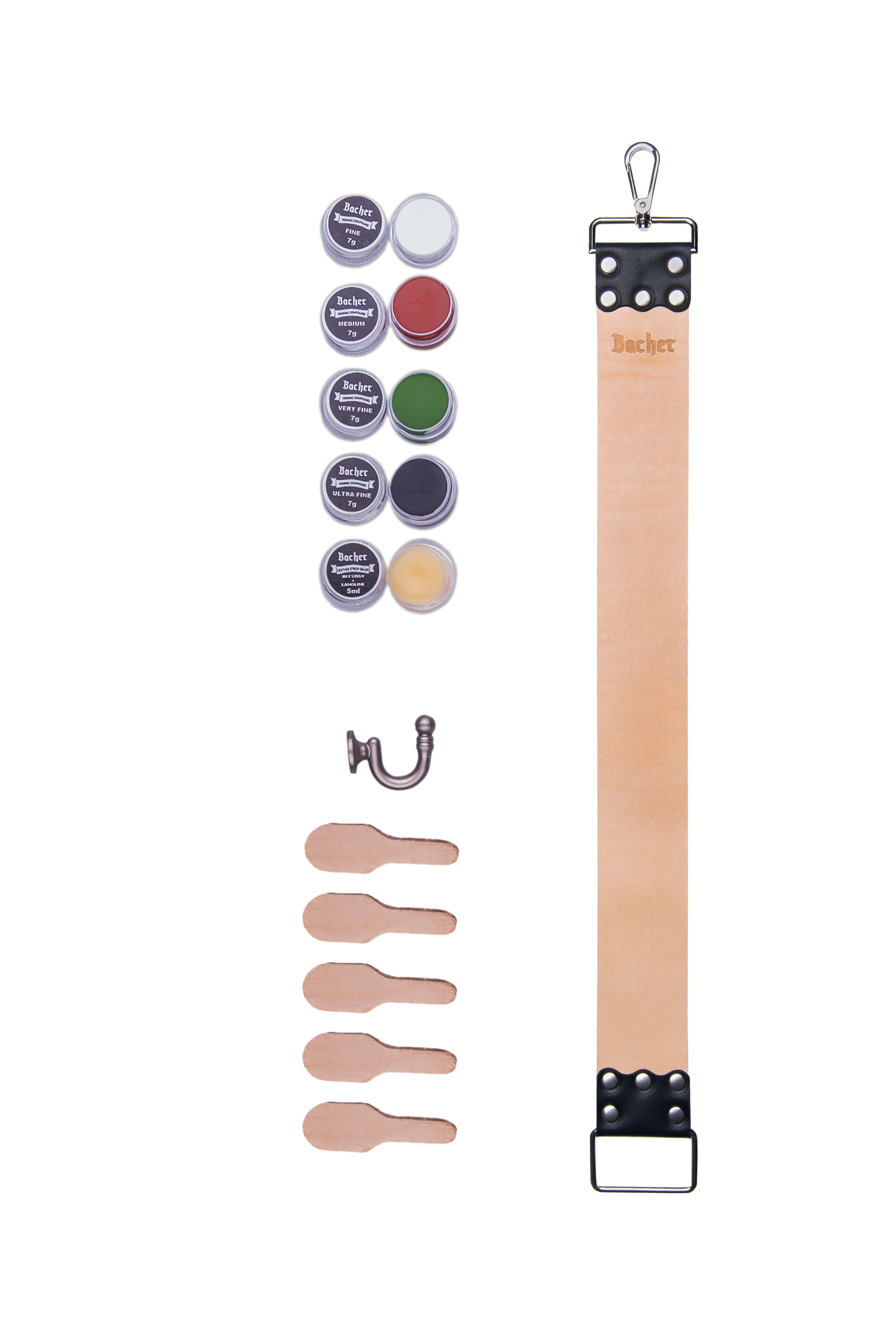 Pasy do ostrzenia i polerowania Bacher dostępne są w trzech rozmiarach.
